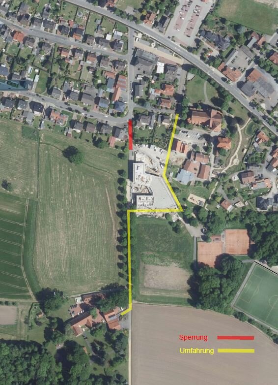 Dazu ist eine Vollsperrung der Straße in diesem Zeitraum erforderlich. Eine provisorische Umfahrung entsprechend der beiliegenden Darstellung wird eingerichtet.