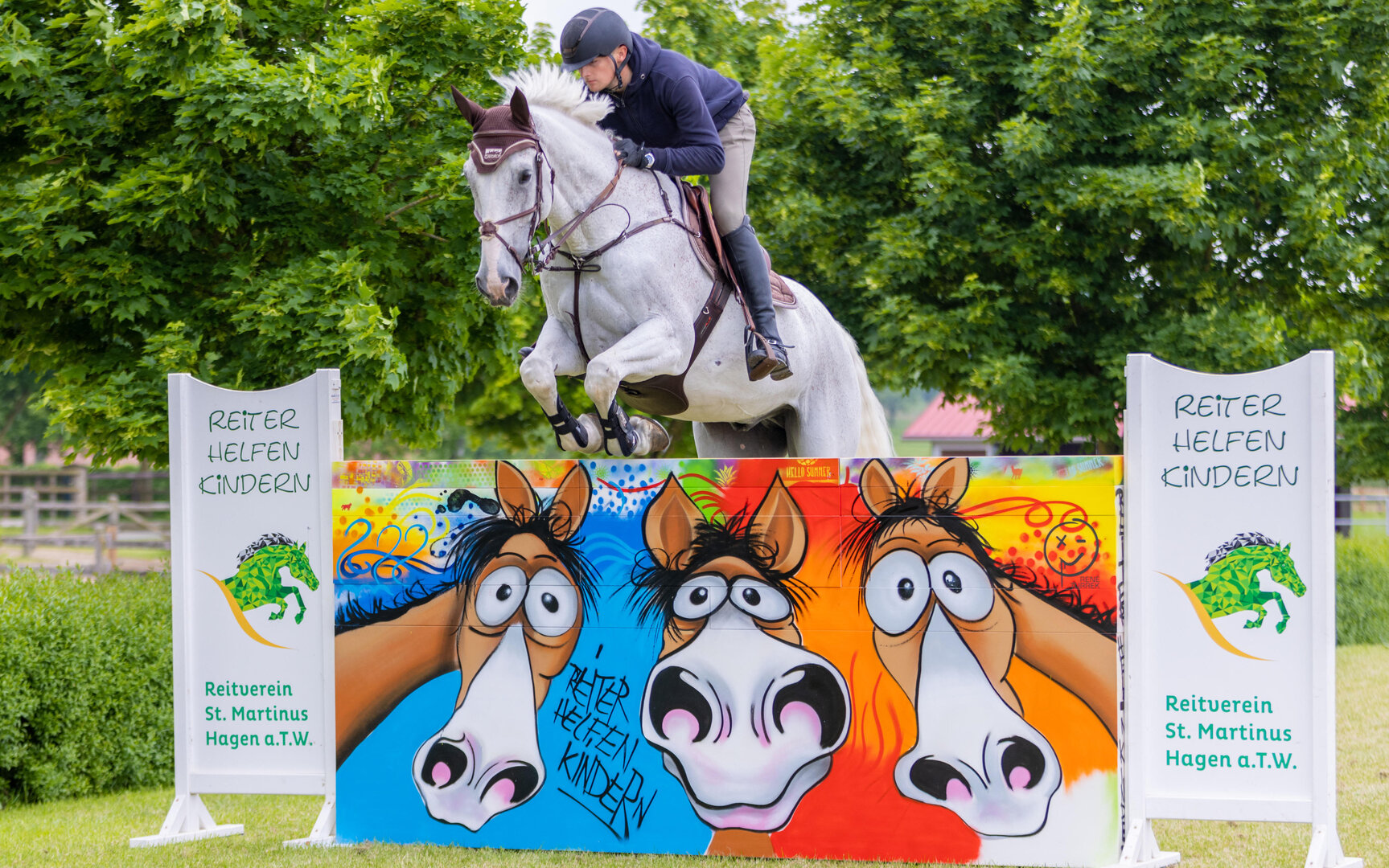 Sechs Tage großer Reitsport für den guten Zweck: Das traditionelle Benefizturnier „Reiter helfen Kindern“ des Reitvereins St. Martinus Hagen war auch in diesem Jahr ein ganz besonderes Event. Auf der Anlage der Familie Haunhorst kämpften rund 400 Reiter*innen in 26 Springprüfungen um den Sieg und trotzen den widrigen Wetterbedingungen.