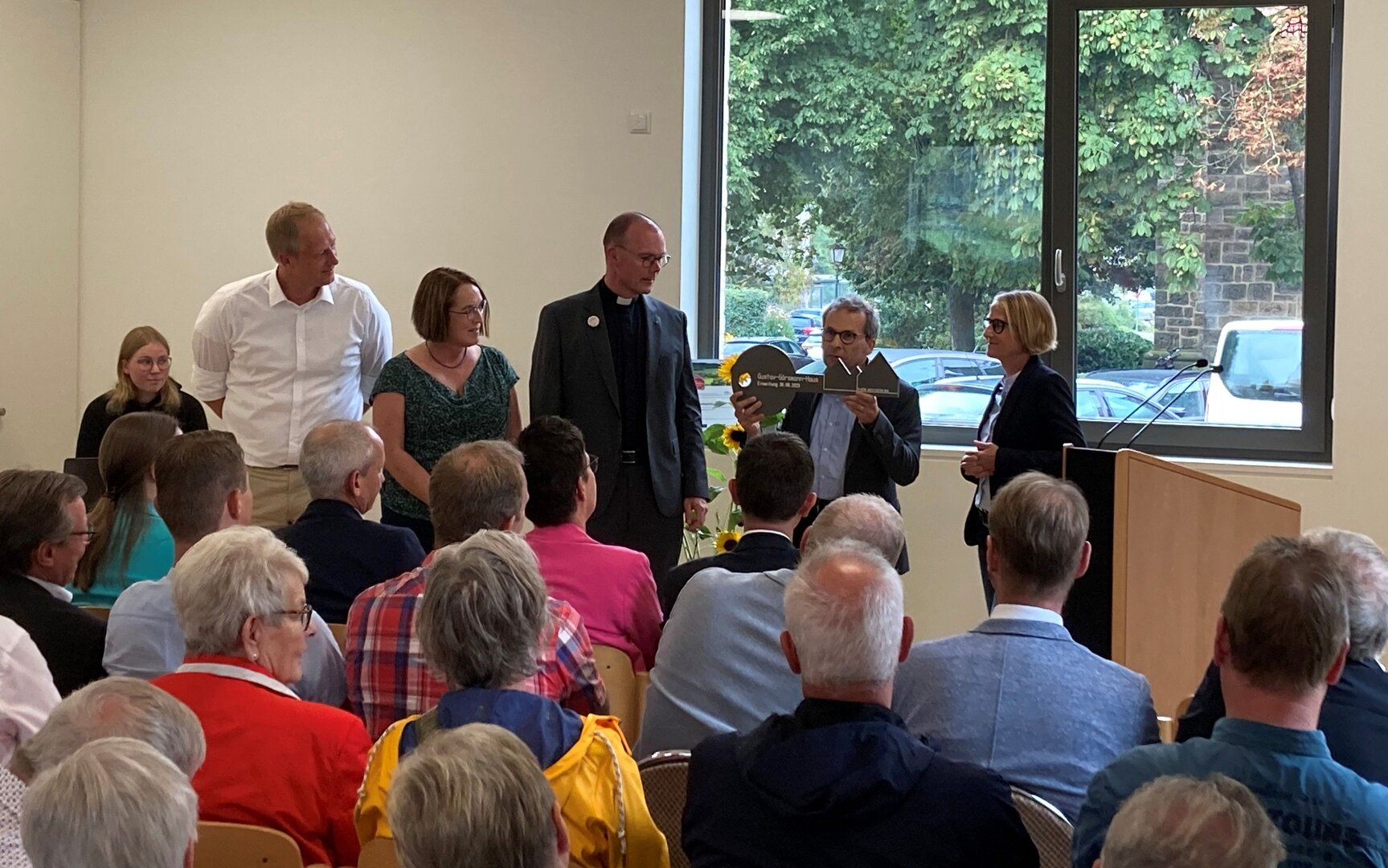 Larissa Albers vom Bistum Osnabrück betonte, dass sich das neue GGH modern und funktional präsentiert und sich architektonisch hervorragend in das Umfeld von St. Marien einfüge. Die Architekten vom B Werk Stephanie Löning und Jürgen Schwegmann gaben Einblicke hinter die Kulissen der Räumlichkeiten, bevor die symbolische Schlüsselübergabe erfolgte. Im Anschluss segnete Pfarrer Hermann Hülsmann die einzelnen Räume und freute sich, dass nun ausreichend Platz für ehrenamtliche Gruppen wie KFD; KJG oder Pfarrgemeinderat zur Verfügung stehe. Sein Dank galt dem Bauausschuss um Norbert Möller, Rendantin Doris Hindersmann und Julian Frank vom Leitungsteam KJG sowie allen ehrenamtlich Beteiligten für den Einsatz und das Engagement, welches mit so einem Neubauprojekt verbunden ist.