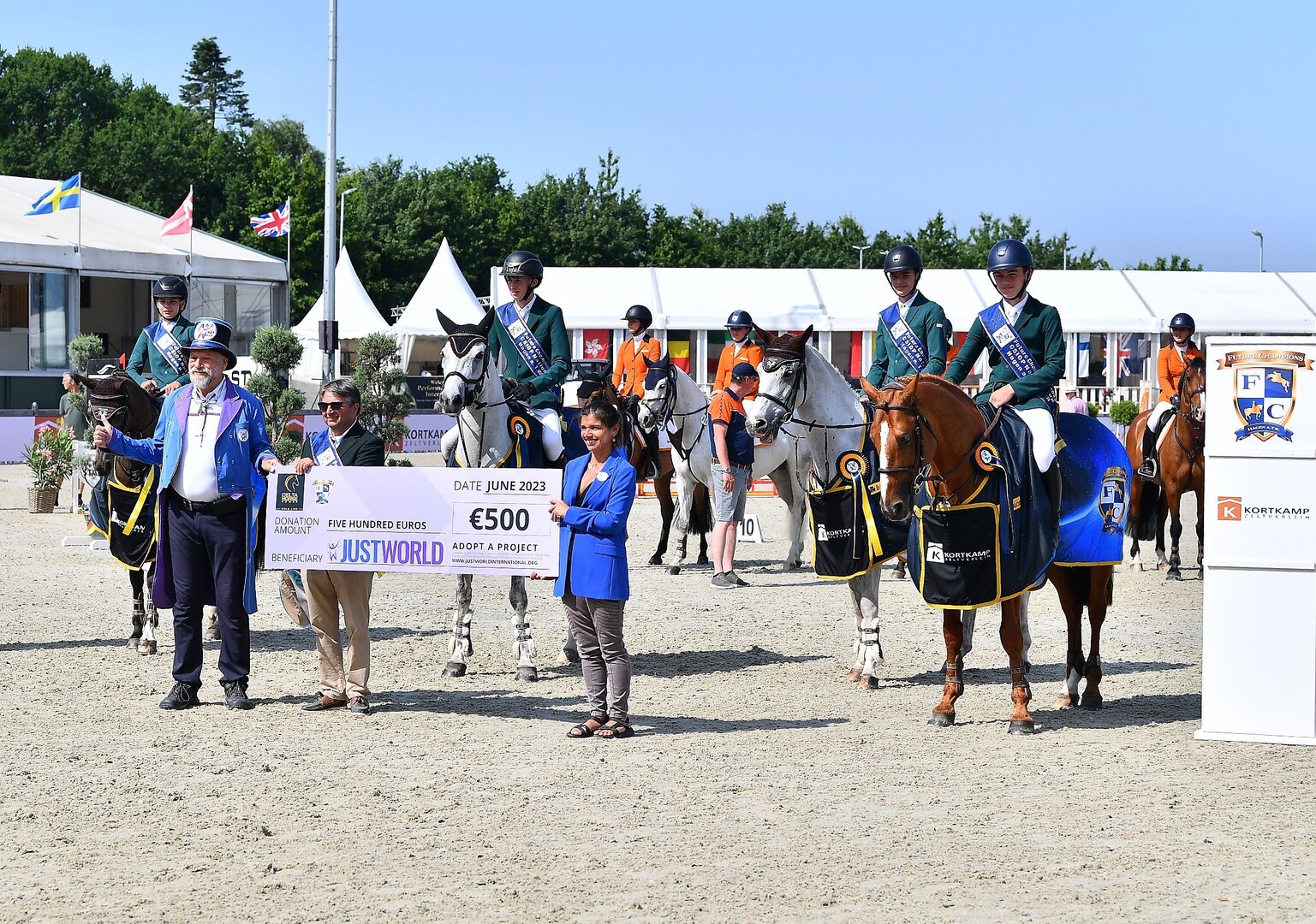 Aller guten Dinge sind drei könnte das Motto der Iren sein, denn die irischen Reiter*innen machten in der Altersklasse der Children den Nationenpreis-Hattrick komplett. Fehlerfreiheit im zweiten Umlauf gab es hier nur in der irischen Mannschaft, in allen anderen Teams hatte jeder Starter mindestens einen Abwurf oder Zeitfehler. Das galt auch für die deutsche Equipe, die im ersten Umlauf (nach Abzug des Streichergebnisses) noch nahezu punktgleich mit den Iren waren. So wurde es für Jolie Marie Kühner (Dialo), Maximiliane Fimpel (Cartagena), Luise Konle (Dressed for Success) und Colin Sorg (Casillas) Platz drei hinter dem Team aus den Niederlanden.