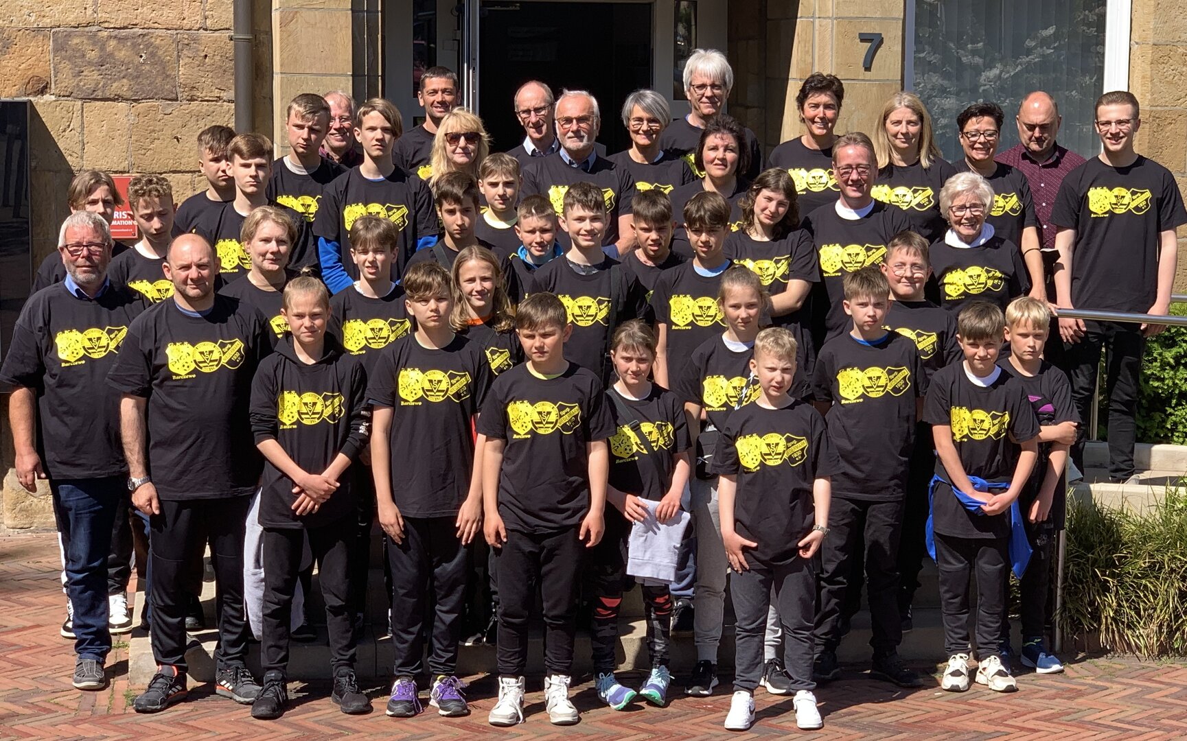 Nicht nur der Sportsgeist verband die Teilnehmenden, auch die von den Sportvereinen gesponserten T-Shirts sorgten für ein starkes Wir-Gefühl. Bei einem stärkenden Frühstück im Rathaus begrüßt Bürgermeisterin Christine Möller die sportive Gruppe und dankte den Organisatoren für Ihren Einsatz. Nach einem Ortsrundgang und dem Bezug der Schlafplätze in der Sporthalle der Grundschule St. Martin fuhr die Gruppe nach Osnabrück zum U21 Fußball Länderspiel Deutschland gegen Ungarn.