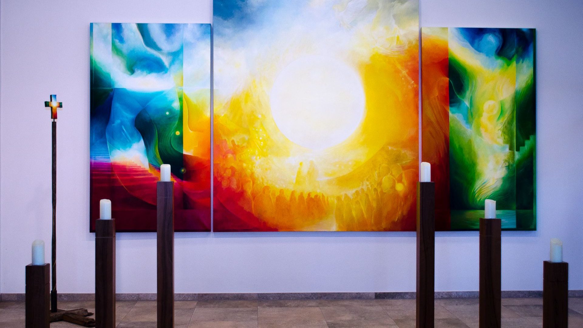 in die Kapelle am Waldfriedhof zu einer Meditation am Triptychon ein.
